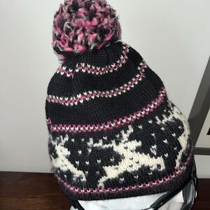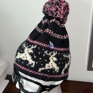 Vintage wool CB Sports Reindeer mini hearts holiday beanie Pom knit hat cap
