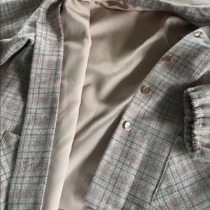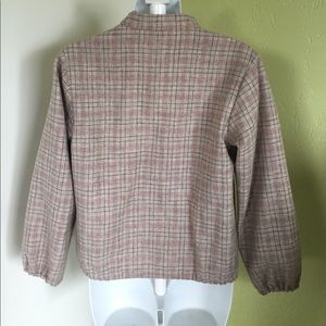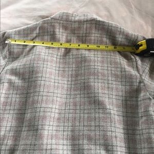 One of a kind lined Wool blazer. 20" from shoulder to waist. Sleeve 19.5" shoulder to wrist. Great for work with jeans or a pencil skirt