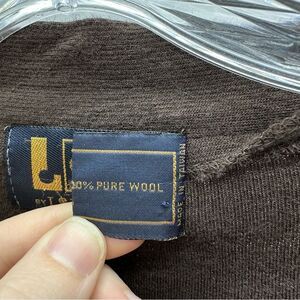 Vintage wool grandpa sweater cardigan by LeRoy brown men's large pockets on front. great for layering. gorgeous buttons. small hole as shown