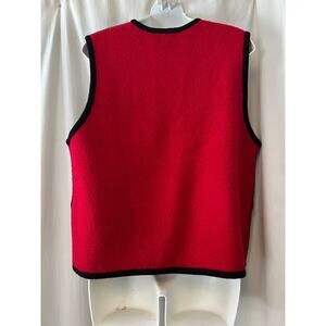 Vintage wool plaid red black scotty dogs zip front vest winter dog lover LG