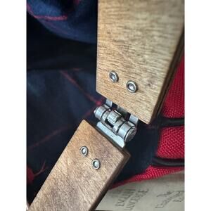 Wool purse with wooden handles with embroidered Old English dog lined great condition rare beautiful bag made in New Hampshire