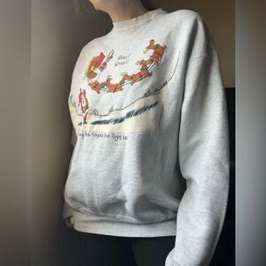 Vintage xmas funny santa reindeer funny graphic crewneck sweater sz xl grey