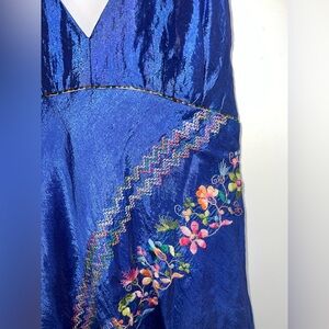 Vintage y2K A.B.S Elegant Blue Halter Dress with Floral Embroidery