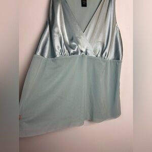 Vintage y2K Lane Bryant Teal Women’s Blouse Plus Size 18-20 Satin Coquette Sexi