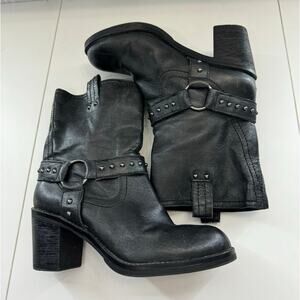 Vintage y2K Moto Style Biker Bootie Black Leather Round Toe Size 8 Nine West