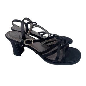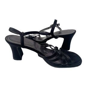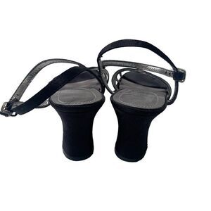 Vintage y2k 00’s Mudd black satin strappy ankle strap buckled heeled sandals size 8.