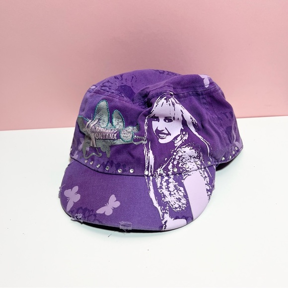 Vintage Y2K 2000s mcbling purple Hannah Montana rhinestone hat - good vintage condition, some flaws as pictured
