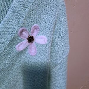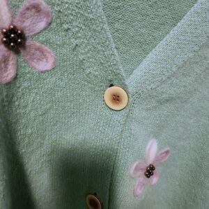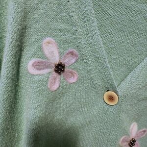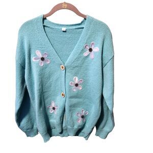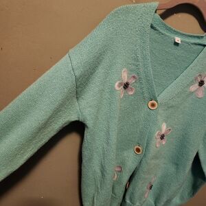 Vintage y2k 70s retro Mint Green Daisy floral Cardigan Grandpa Sweater