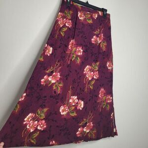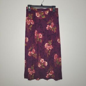 Jaclyn Smith skirt: purple red green, floral, back elastic, side slits, maxi midi, witchy, grunge