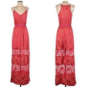 Vintage y2k ABS Allen Schwartz Maxi Dress Floral Lace Slit Pink Wrap Size Small