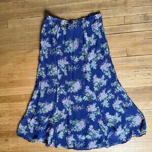 Vintage y2k A-Line Blue & Pink Flower Print Midi Skirt Size Small