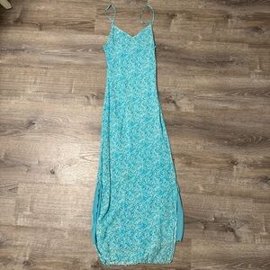 Vintage y2k American eagle slinky blue floral slip dress slits 6