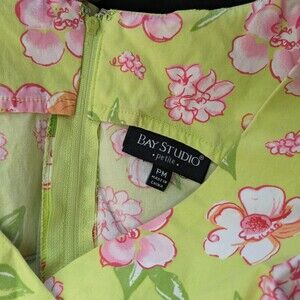 Vintage y2k Bay Studio Midi Dress Faux Wrap Floral Green Crochet Size Petite M