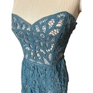 Vintage y2k Betsey Johnson Strapless Lace Dress in Blue Size Small