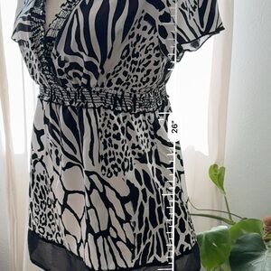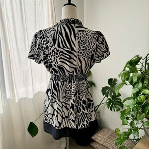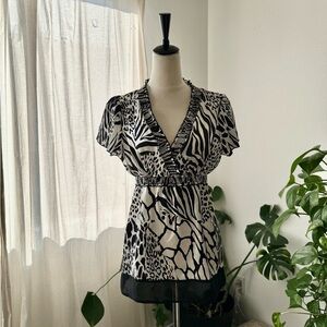 Vintage y2k Black and White V Neck Animal Print Tunic Top