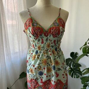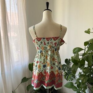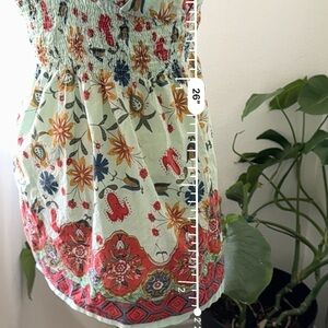 Vintage y2k Boho Floral Print Smocked Waist Tunic Top