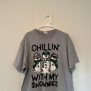 delta pro weight gray Christmas short sleeve, unisex xl, chillin' with my snowmies 2000s humor t shirt