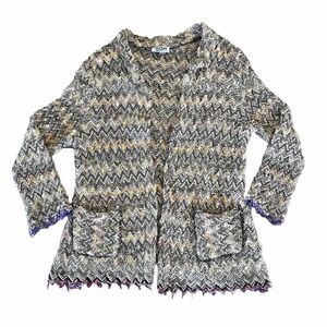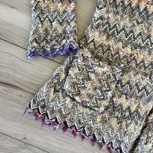 Vintage #y2k Chunky Knit Long Cardigan Funky Fuzzy Zig Zag