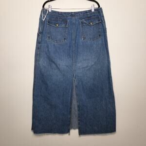 Vintage y2k Denim Maxi Skirt Slit Button Boho Fairy Jones Jeans 16 Western