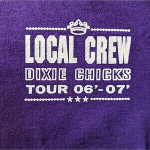 Vintage Y2K Dixie Chicks Local Crew '06-'07 Tour T-Shirt. Purple T-shirt with white writing front and back. Printed on a Gildan t-shirt. 100% cotton, made in Honduras. Marked a size XL- 24" armpit to armpit, 30" long. In great condition.