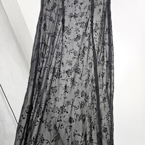 Vintage y2k Dress Black Velvet Glitter Sheer Floral Embroidered Maxi Size 8P
