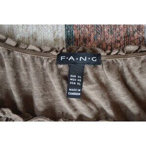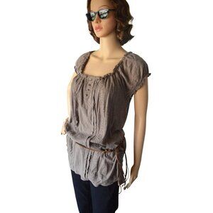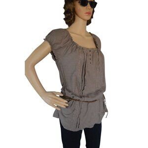 Vintage y2k F.A.N.G. Brown Boho Blouse Womens Size XL Beaded Hip Belt Cap Sleeve