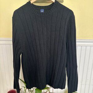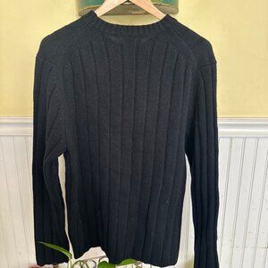 Vintage y2k Gap Black Lambswool Ribbed Knit Sweater Crewneck Long Sleeve Size L