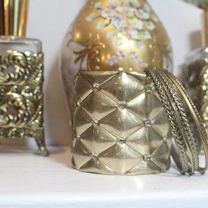Vintage y2k Gold Quilted Rhinestone Chic Cuff & Bangle 6 Piece Bracelet Set