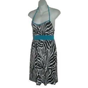 Vintage y2k Guess Jeans Dress Zebra Print Animal Mob Wife Bimbocore Trashy L 00s