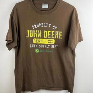 For sale is a vintage Y2K Hanes John Deere shirt in men's size large. This brown work tee features the iconic John Deere logo and is perfect for fans of farming and outdoor lifestyle.