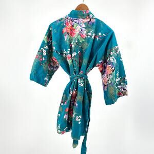 Vintage y2k Japanese Teal 100% Cotton Twill Child’s Kimono