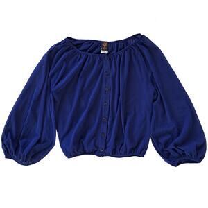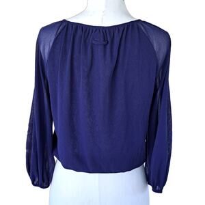 Vintage y2k Jean Paul Gaultier SOLIEL Blue Nylon Mesh Crop Peasant Top Small