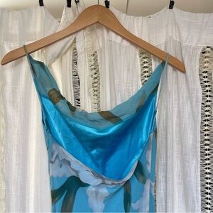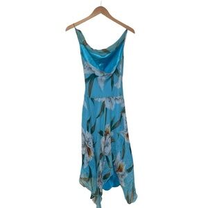 Vintage y2k Laundry by Shelli Segal Silk Blue Floral Asymmetrical Midi Dress 2