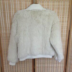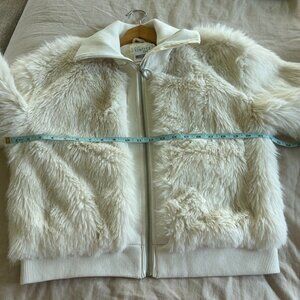 Vintage y2k Limited Too X-Large (16/18) White Faux Fur Zip-Up Jacket With Ribbed