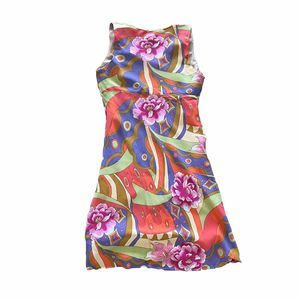Vintage y2k MICA Psychedelic Paisley Floral Midi Sheath Slip Dress Size 8