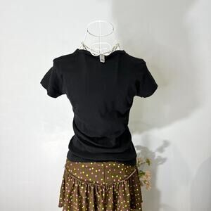 The cutest vintage y2k ‘Maui’ bedazzled hibiscus flower rhinestone black baby tee 🌺