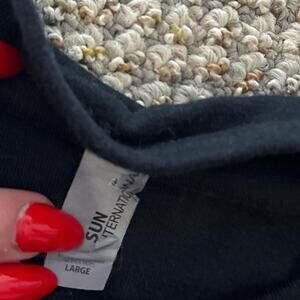 -size l, fits l, 15” pit to pit and 21” length from top of shoulder to bottom hem both laid flat