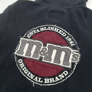 Vintage y2k Men's Black Red M&Ms Logo Full Zip Hoodie Sweatshirt Size Large