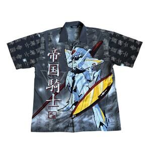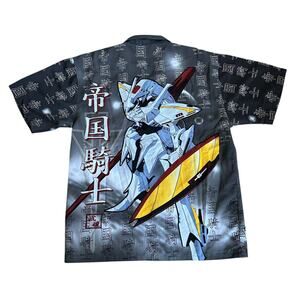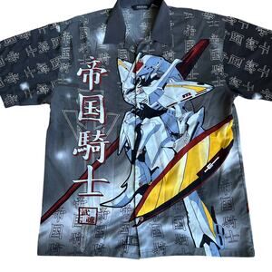 Vintage y2k Musso Gundam Wing Button Up AllOverPrint Mens Large