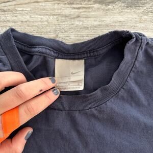 Vintage y2k Nike Navy Blue Mens Large Center Logo Swoosh Be True Quote T-Shirt