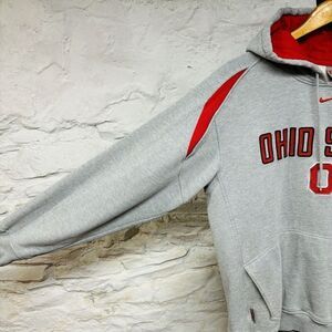 Vintage y2k Ohio State Nike Team Authentic Center Swoosh Hoodie Sweatshirt OSU. Embroidered swoosh, stitched logo, drawstring hood, kangaroo pocket, rib knit panels on the shoulders.