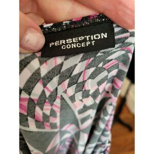 Vintage y2k pink and black babydoll top features an attached tank, empire waist, cap sleeves, and bust shirring. Top is made of a stretchy polyester knit and is a cool design of circles and triangles. Top is marked as XL and shown on size Small unpinned.