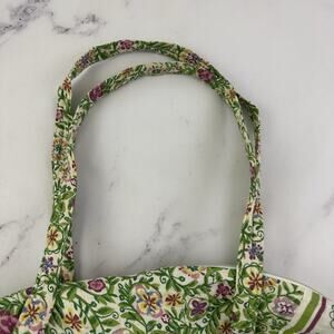 Vintage y2k Quilted Duffle Travel Bag Green Pink Floral Overnight Cottage Cotton