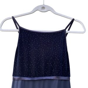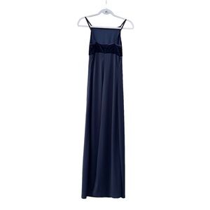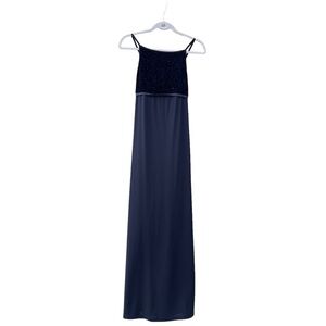 Vintage y2k Velour Suede Navy Blue Empire Waist Bodycon Sleeveless Maxi Dress S