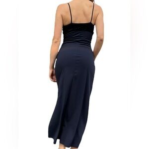 🥒 Vintage y2k Velour Suede Navy Blue Empire Waist Bodycon Maxi Dress S