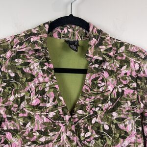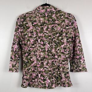 Vintage y2k Womens Collared Button Up Top M Floral Lace 3/4 Sleeve Top Cottage