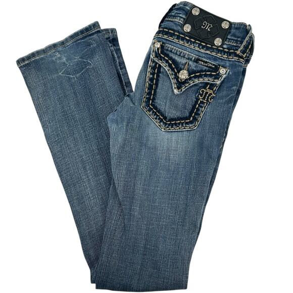 Vintage y2k Women's Low Rise Miss Me Blue Denim Bootcut Jeans Sz 26 JP5014-6
