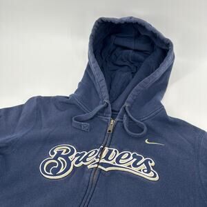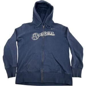 Vintage y2k Women's Navy Blue Embroidered Nike Milwaukee Brewers MLB Baseball Hoodie Sweatshirt Sz L