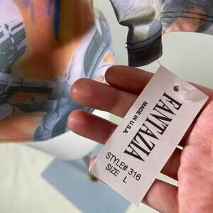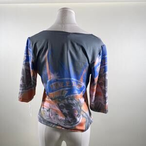 Vintage Fantazia Multi-coloured 3/4 sleeve American flag print top has rhinestone gems on the front and is stretchy. Read measurements for accurate sizing