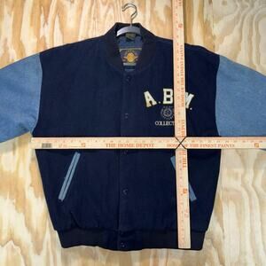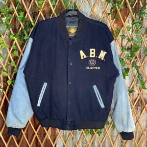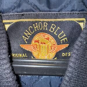 Vintage / Y2K anchor blue quality clothing original 1993-94 collection Letterman’s jacket embroidered Patches 1990s grail surf/skate/streetwear stussy style